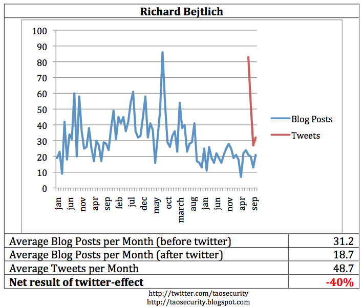 We were curious if this twitter-effect was real, imaginary or only applicable to lazy people like us.. Thanks to python-twitter and a few lines of script we can look at the the blogging habits of some info-sec superstars (and maybe confuse correlation and causation to jump to conclusions while we at it).