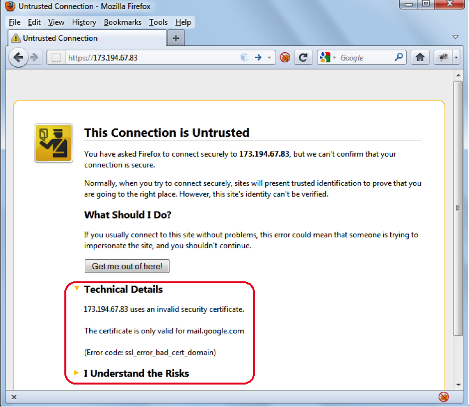 Figure 7: Firefox reporting the common name contained in a SSL certificate for a host