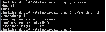 An attacker would need to know the “sequence number” of an already established netlink connection between a kernel component such as IPSEC and Mobicore driver in order to exploit this vulnerability. This sequence numbers were incremental starting from zero but currently there is no kernel component on the Samsung phone that uses the Mobicore API, thus this issue was not a high risk. We notified the vendor about this issue 6 months ago but haven’t received any response regarding the planned fix. The following figures demonstrate exploitation of this issue from an Android unprivileged process :