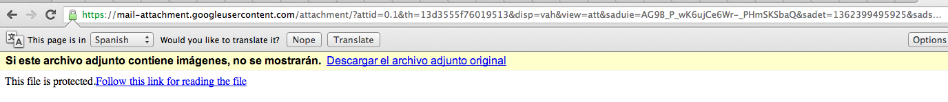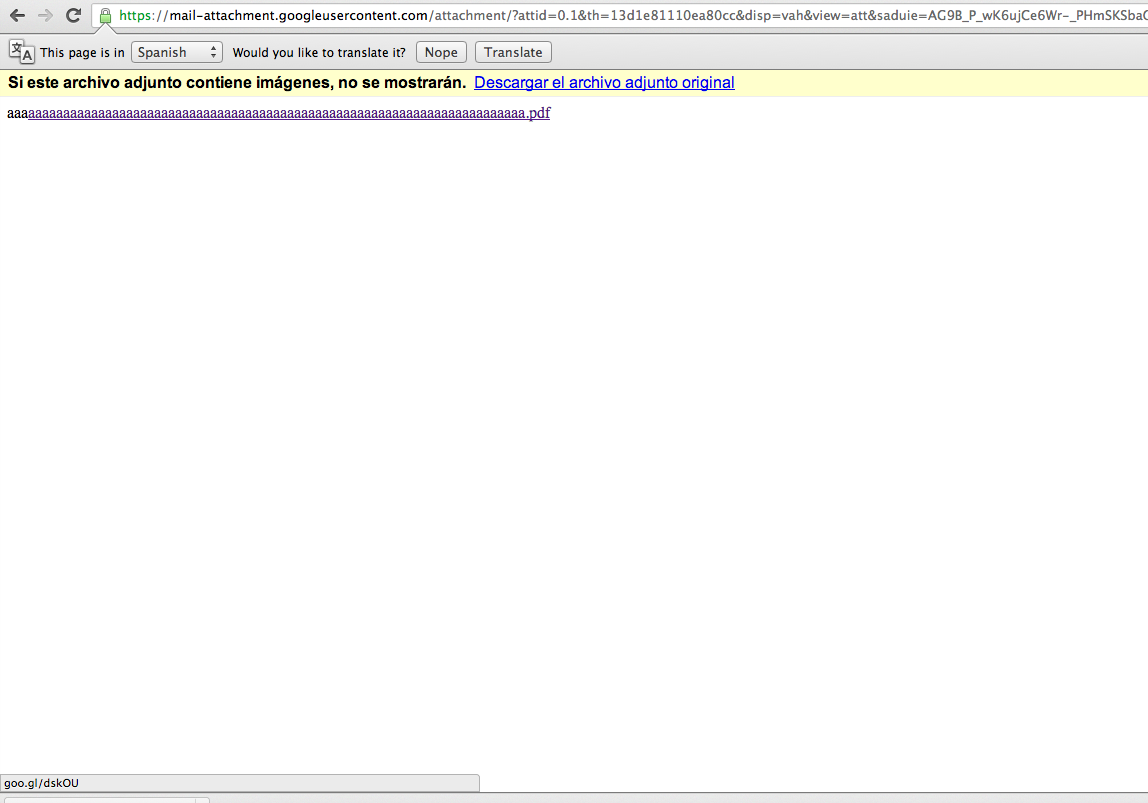 As you can see, Google shows the file name inside the compressed file but the tag is displayed with HTML entities. If we then try to see the contents of the file, Google responds by telling us it’s not possible to read the content of the file (it’s empty) and shows you the file “without formatting” after a few seconds: