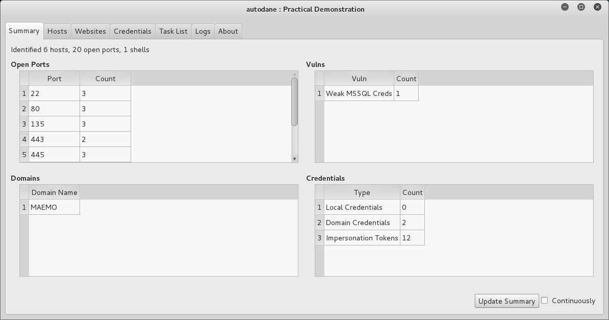 Observing both the time consuming nature of these “common tasks” and that they appeared easily automatable, we decided to construct a framework for automating such activities; Automatic Domain Administrator & Network Exploitation (autoDANE) This framework orchestrates the industry’s currently favoured tools for Active Directory exploitation.