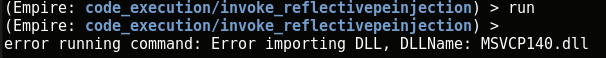 (Empire: code_execution/invoke_reflectivepeinjection) >run(Empire: code_execution/invoke_reflectivepeinjection) >back