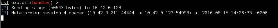 Well at this point, you just need your msf multihandler setup using your specified LHOST and LPORT and set your payload to “android/meterpreter/reverse_tcp” and that’s about it.
