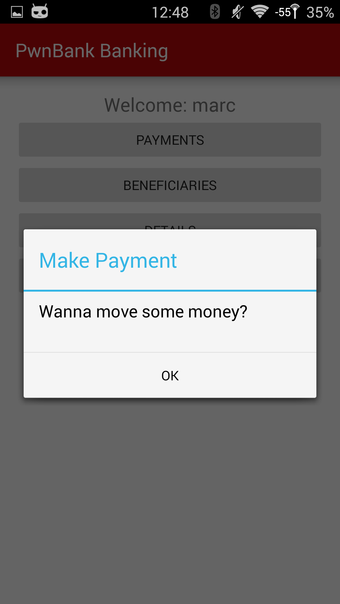 This iteration of the Mobile course will be the initial introduction of PwnBank. PwnBank is a fully-fledged financial banking application with all the usual “banking” functionality, such as managing payments, beneficiaries, etc. In addition, it has back-end services, which are also vulnerable to attack, so you get to own the entire network.