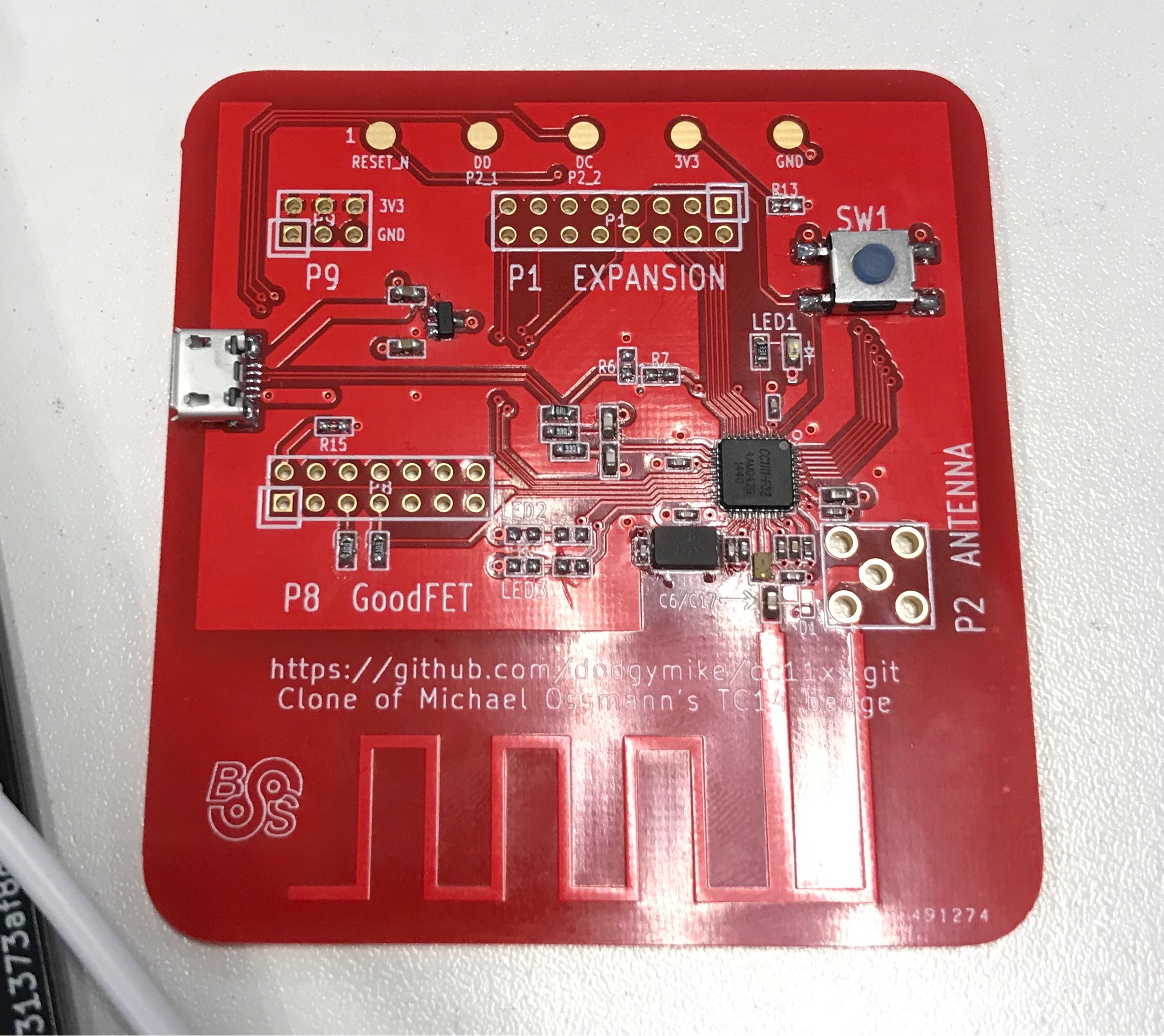 The RF badge as already mentioned previously had a cc1111, RFCat compatible chip, a USB port and a button (no idea what that did haha).