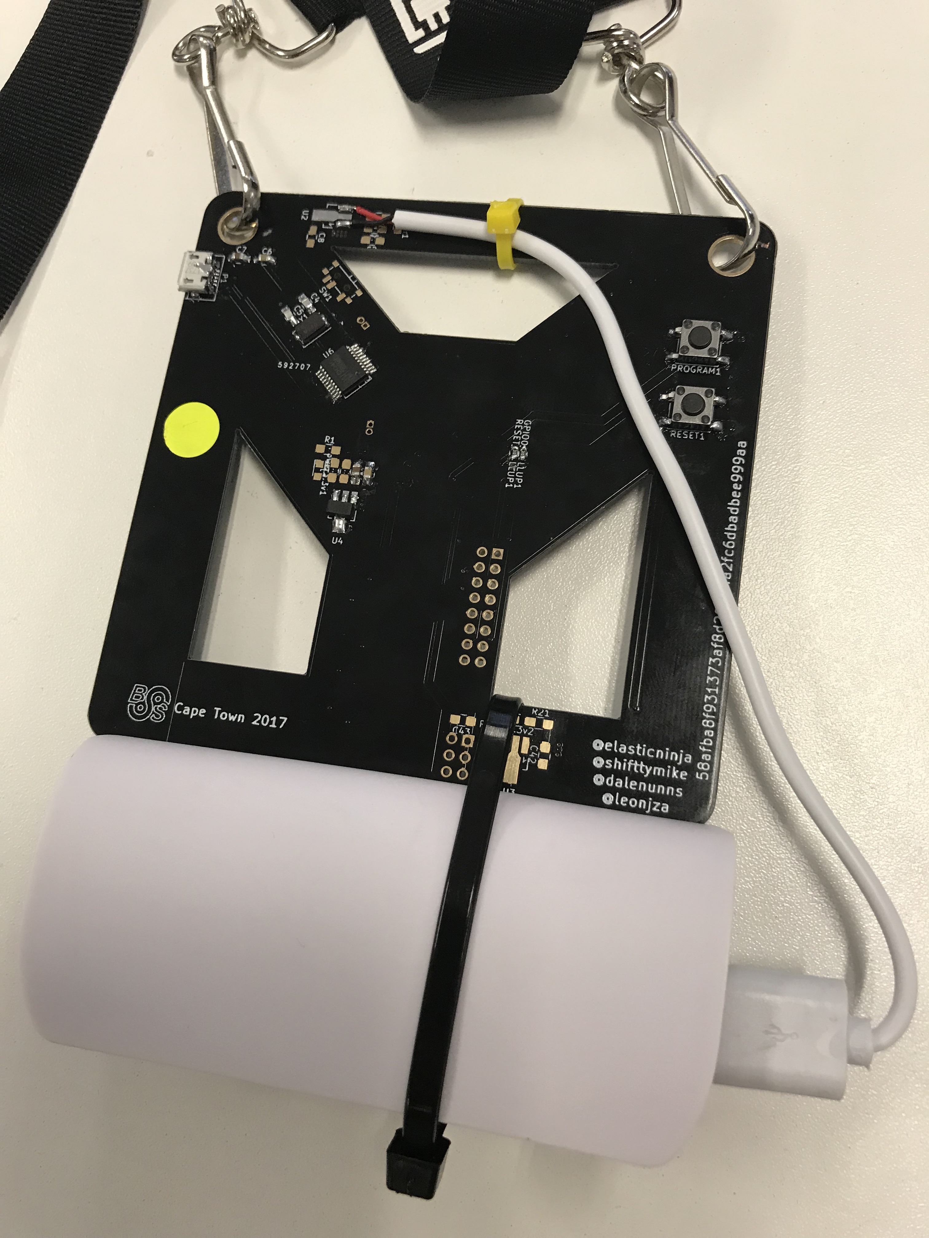 The power bank itself was wired to a USB cable, letting you unplug it and charge the power bank easily. There were also two buttons soldered on to the back of the badge.