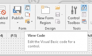 While looking at this designer, an interesting little area caught my attention. If you hover over the icon with a form and magnifying-glass you will get a pop-up message View Code – Edit the Visual Basic code for a control. You may now figure where this is going…