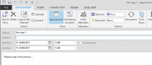 It also allowed for the discovery of some nice “hidden” features. For example, setting the PidTagSendOutlookRecallReport to true would hide the form from the user interface. This means the new form won’t show up under custom forms in the new item menu. To discover the new form, a user would need to go into the advanced options tab in Outlook, navigate to forms, select the inbox and view the list of forms (unlikely).