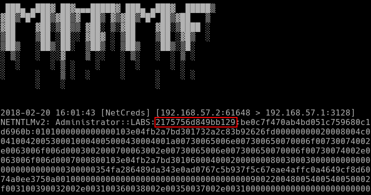 There was some added complexity however – MITMf incorporates their own version of net-creds, which is not synced with the upstream version. I included the fixes to this version as well, and finally created pull requests for both net-creds and MITMf. One can thus now capture the full NETNTLMv2 hashes via MITMf: