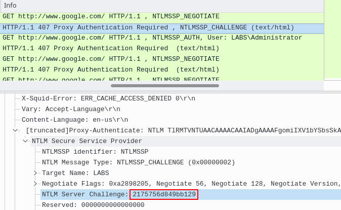 The net-creds code base can parse several types of packets for credentials and other sensitive data. In this particular case, the NETNTLMv2 hash was extracted from the Proxy-Authenticate HTTP header.