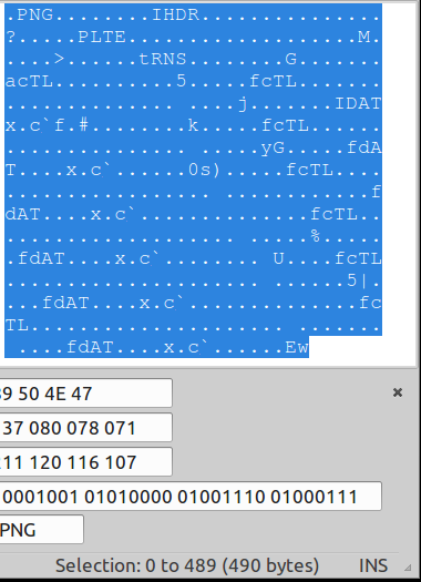First thing to do is to cut the bytes we added previously in order to let the APNG Optimizer program to properly go through all the file without hitting a crash. Remove the last few bytes until the letter “w”. The file should be 490 bytes long now.