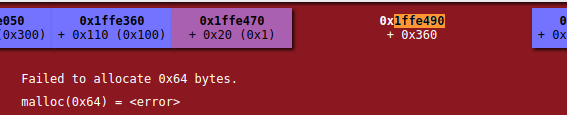 With this, we can conclude that the culprit of causing memory corruptions has to be on the left side of 0x1ffe490, perhaps maybe, the fastchunk (purple) at 0x1ffe470 that was malloc‘d with a size of 0x1?