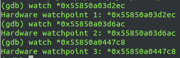 To find out what instructions write to the identified pointers, we used gdb and set a watchpoint on each address found by scanmem.