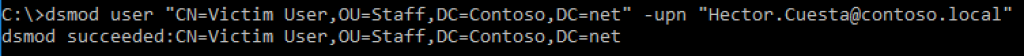 Now that you understand the conceptual part of the attack lets go into the practical details on how to execute it. You will need a valid user able to perform UPN changes, a valid smart card, a target account and the dsmod windows utility.