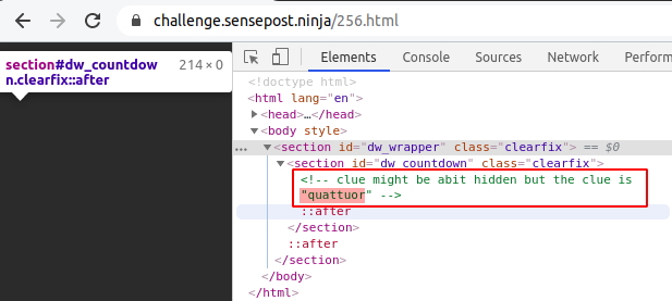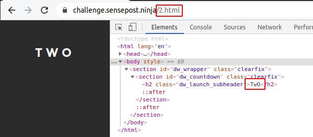 The second page showed the clue as TWO, however, when inspecting the element we could see another clue. The number two was written in Camel-Case.