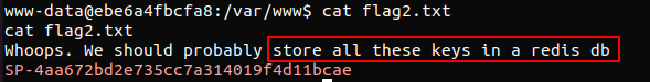 flag2.txt hinted that the next flag may have been hidden within a Redis database.