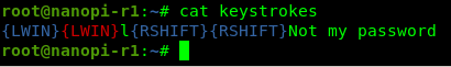 P.S.: As a bonus feature, I thought I would try setting up a keylogger, using USBProxy. Although it is marked as a “legacy” product, it still works reasonably well! The idea is that it “mirrors” a USB device plugged in to the R1S via the USB-A connector by creating identical USB gadget descriptors, and simply copying packets from one side to the other. It is probably most interesting for researching USB protocols, but out of the box it can also act as a keylogger.
