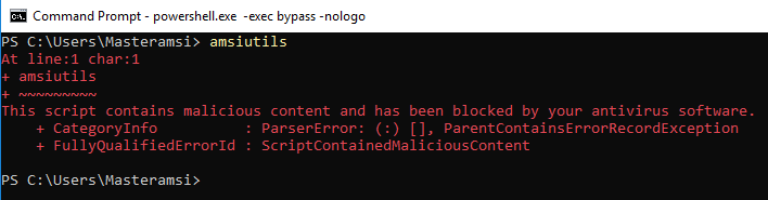 A simple test for AMSI is to type a string commonly used in AMSI bypasses into a PowerShell prompt – amsiutils. If the endpoint security product supports AMSI, and detects the string, the PowerShell prompt should show an error stating that the command entered was malicious.