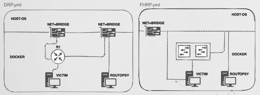 We’re aware that many people don’t have access to software/hardware in order to build labs to play around with these vulnerabilities, or lack the knowledge on how to configure network emulators. For that reason, we have also built some ‘yaml’ files which can be used with docker-compose to build two lab environments within docker.