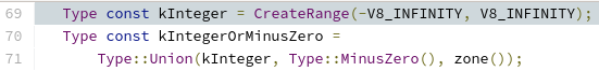 We can see in the previous image that if an integer is to contain the MinusZero type, it is explicitly Union‘d to it. Therefore the following line in NumberMax will yield a NoneType due to the intersection being empty, since kInteger does not contain the MinusZero type (remember, rhs in our analysis):