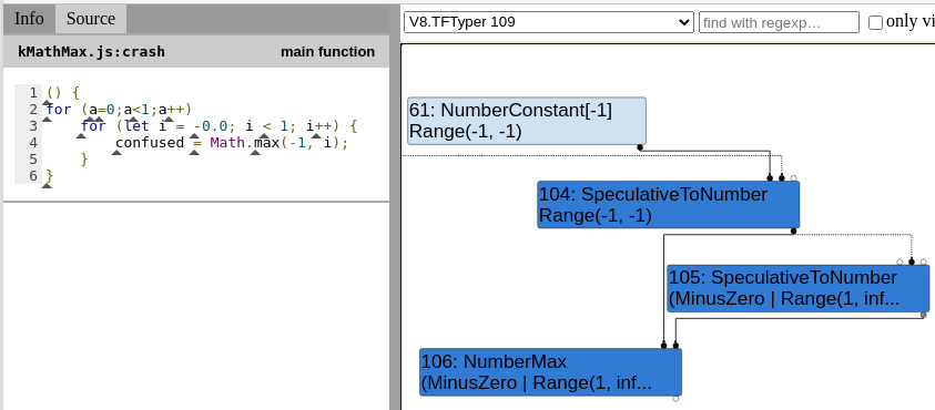 MinusZero type from node 105Here we can see that the final patch propagates the MinusZero type from node 105 to node 106 which didn’t happen previously.