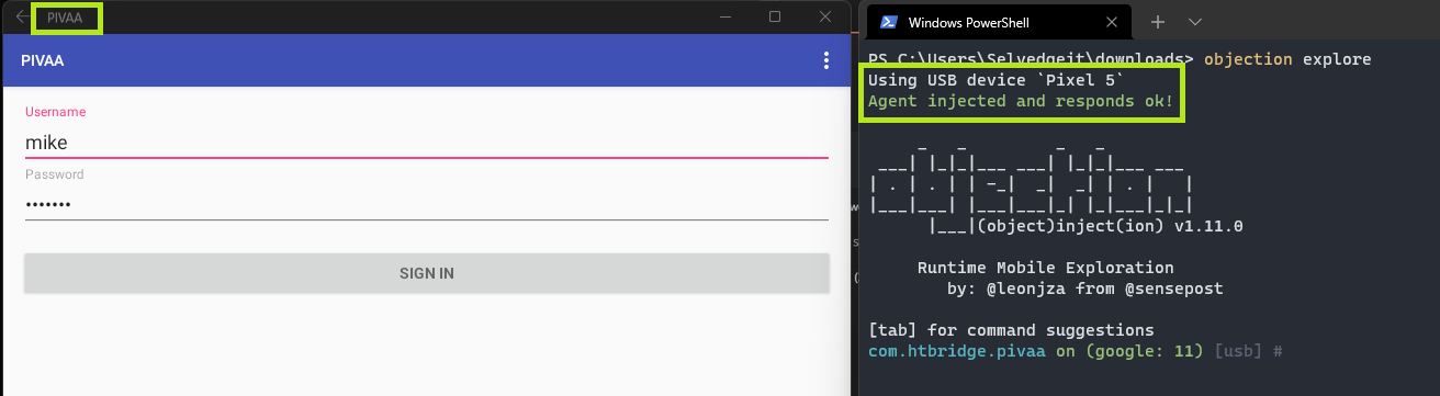 adb install .\pivaa.objection.apk