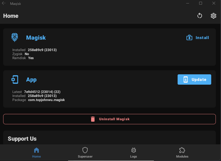 - Download Magisk from the Canary branch on the Magisk repo