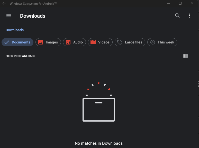 I knew I had access to all folders after rooting with Magisk, but the Downloads folder was visible within the files application of WSA itself, so I selected this as the destination directory.