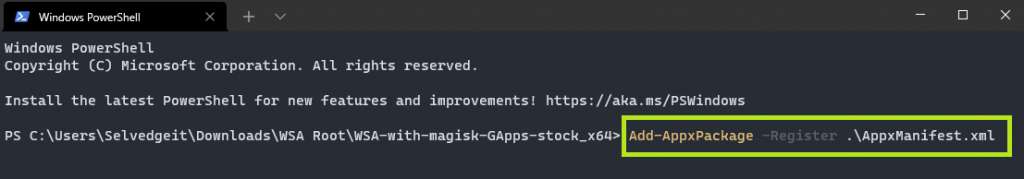 Add-AppxPackage -Path "C:\path\to\wsa.msixbundle"