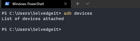 Back in the terminal, we can now run ADB (either directly from the platform tools directory, or from any directory if you modified your environment variables). Typing ADB devices will give a list of all the current available devices which will initially be empty. We’ll fix that in a moment.