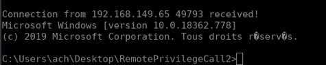 Since I have Full Control rights on this binary I can just replace it with my backdoored RPC server, reboot the server and realize that the backdoored RPC interface is reachable: