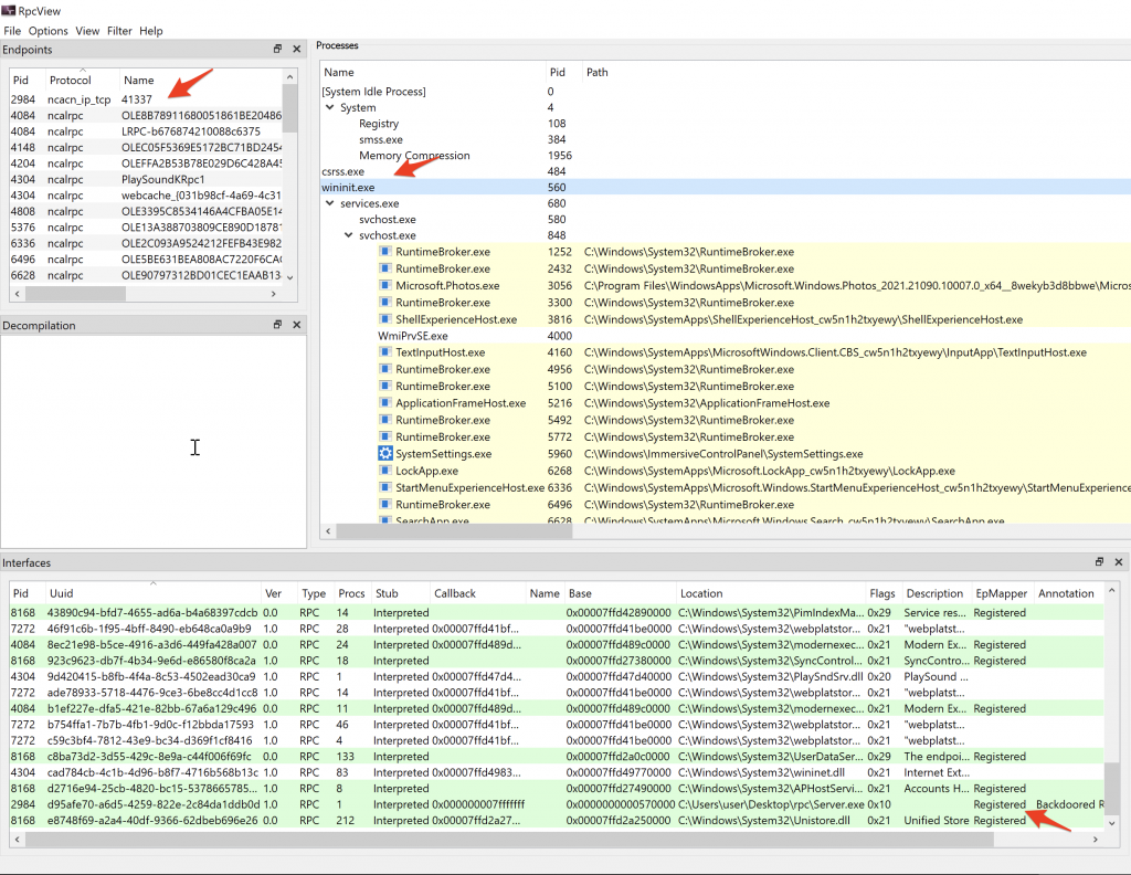 - A provider which is the PE binary (EXE or DLL) that is exposing the RPC interface