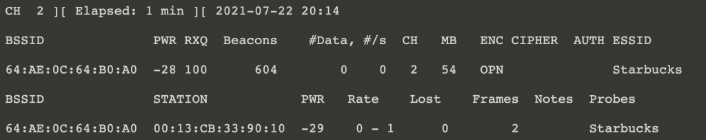 Here we can see an Open network called “Starbucks” (Just thematic, not based on an actual Starbucks) with some clients connected.