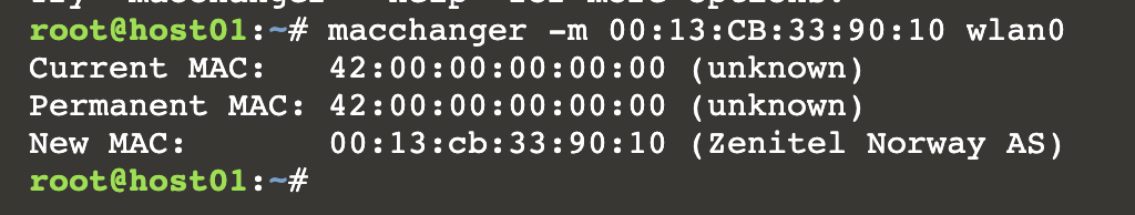 Given that we can see the MAC addresses of devices connected to the Access Point and we have full control over our own device, it is possible to set our MAC address to mimic another device and connect. This will trick the Captive portal software in thinking that we are a different user that has already authenticated, allowing us through. We pick a victims MAC address from the output and using macchanger (an easy way to change your MAC address), we mimic that address which may be an already authenticated user. Keep in mind, at this point if that user had paid for Internet we would be stealing that data as we would be pretending to be them.