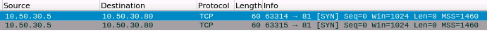 As we can see from the above wireshark output a SYN scan receives the SYN, ACK response from the server, which it interprets as the port is open. Next a RST is sent to close the connection. A closed port will differ in that it receives a RST flag from the server, indicating the port is available and not blocked by a firewall, but there is no service running on that port.