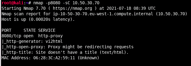 Often you might be interested in seeing whether a service is vulnerable to something, but you are unsure of what to check for. In this case you could leverage scripts that ship by default with nmap. Nmap scripts are tagged with categories, ranging from information gathering related scripts to script that do vulnerability scans. Scripts have a risk score tied to them as well. Obviously, the higher the risk score, the higher the chances of something bad happening (such as a service dying). Scripts with the default tag are generally safe to run, but may be intrusive in one or more ways, so make sure you have permission ;) Anyways, a default script scan (with the -sC flag) would run those scripts to help identify some potential or known vulnerabilities.