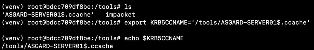 export KRB5CCNAME='/tools/impacket/ASGARD-SERVER01$.ccache'