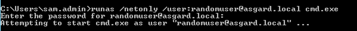 To avoid issues while requesting Kerberos tickets, I tend to create a “fake” network CMD session using Runas supplied with the /netonly flag, where I can provide fake user credentials.