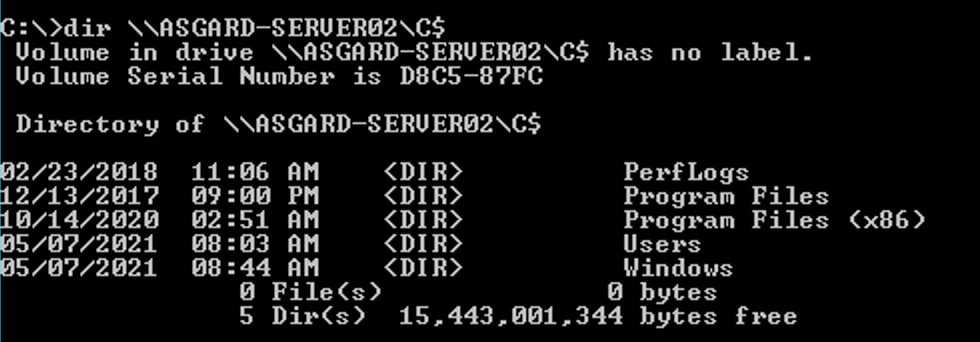 Rubeus’ /ptt flag will cache the ticket in our current session and we should be able to list the remote C$ share as arthur.da on ASGARD-SERVER02: