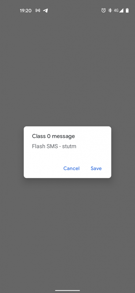 - Class 0: Using this class the SMS will appear on the receiver’s mobile screen and no user interaction is required. This SMS will be automatically deleted after a very short time (By default is 5 minutes but it could also be set to 0 seconds, resulting in an invisible SMS) unless the user decides to save it. To use this class, the Data Coding Scheme (TP-DCS) field must be set to