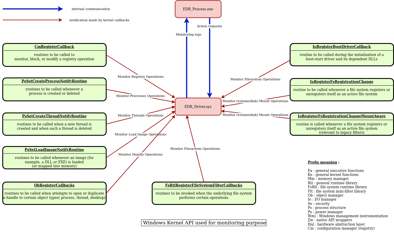 In the figure below I tried to map common Windows Kernel callbacks used for monitoring purposes.