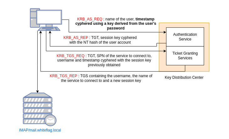 On Kerberos it is pretty much the same. The Kerberos authentication protocol relies on four packets which are: