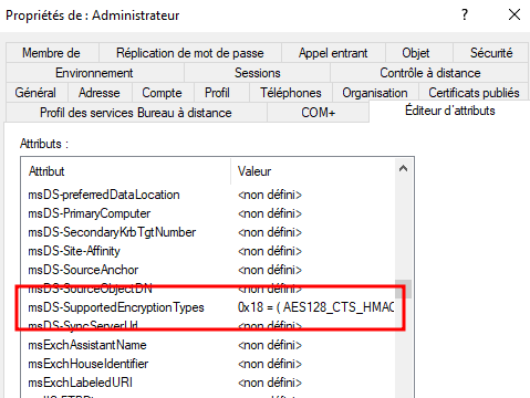 As you can see, NTLM authentication is disabled, the RC4 algorithm cannot be used to cipher the timestamp for Kerberos authentication and finally, Kerberos delegation is disabled. Let’s test this.