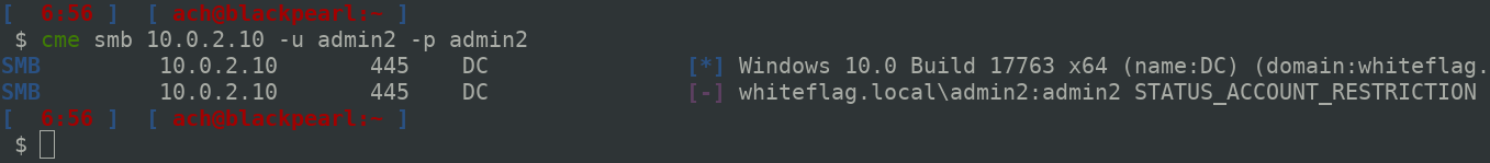 As you can see it’s not working, we receive the “STATUS_ACCOUNT_RESTRICTION”. And now lets try using Kerberos: