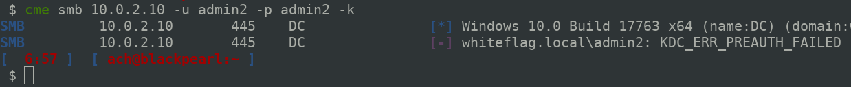 While I was playing with the CrackMapExec PR, I randomly tried to authenticate using Kerberos as the WHITEFLAG/Administrator account and what I realised was that it works even if the user is in the Protected Users group: