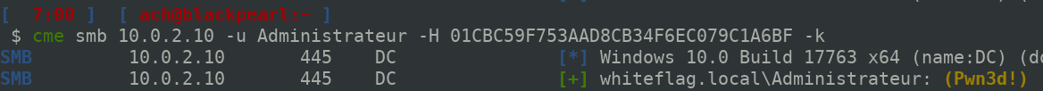 The interesting thing is that RC4 cyphers the timestamp using the NT hash of the user. Since we have a valid NT hash, we can cipher the timestamp and have a valid KRB_AS_REQ packet. With the CrackMapExec framework we can now connect to remote servers using two well known attacks: