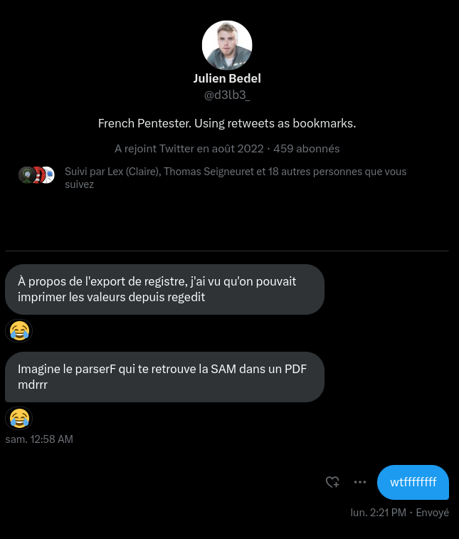 Concerning the export of registry keys, I saw that it is possible to directly print the key values from regedit. Imagine a tool which can find SAM databases in PDF files lol.