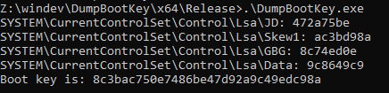 - Get the boot key (whether running the previously mentioned binary whose only purpose is to query some registry key class values or via the print method)